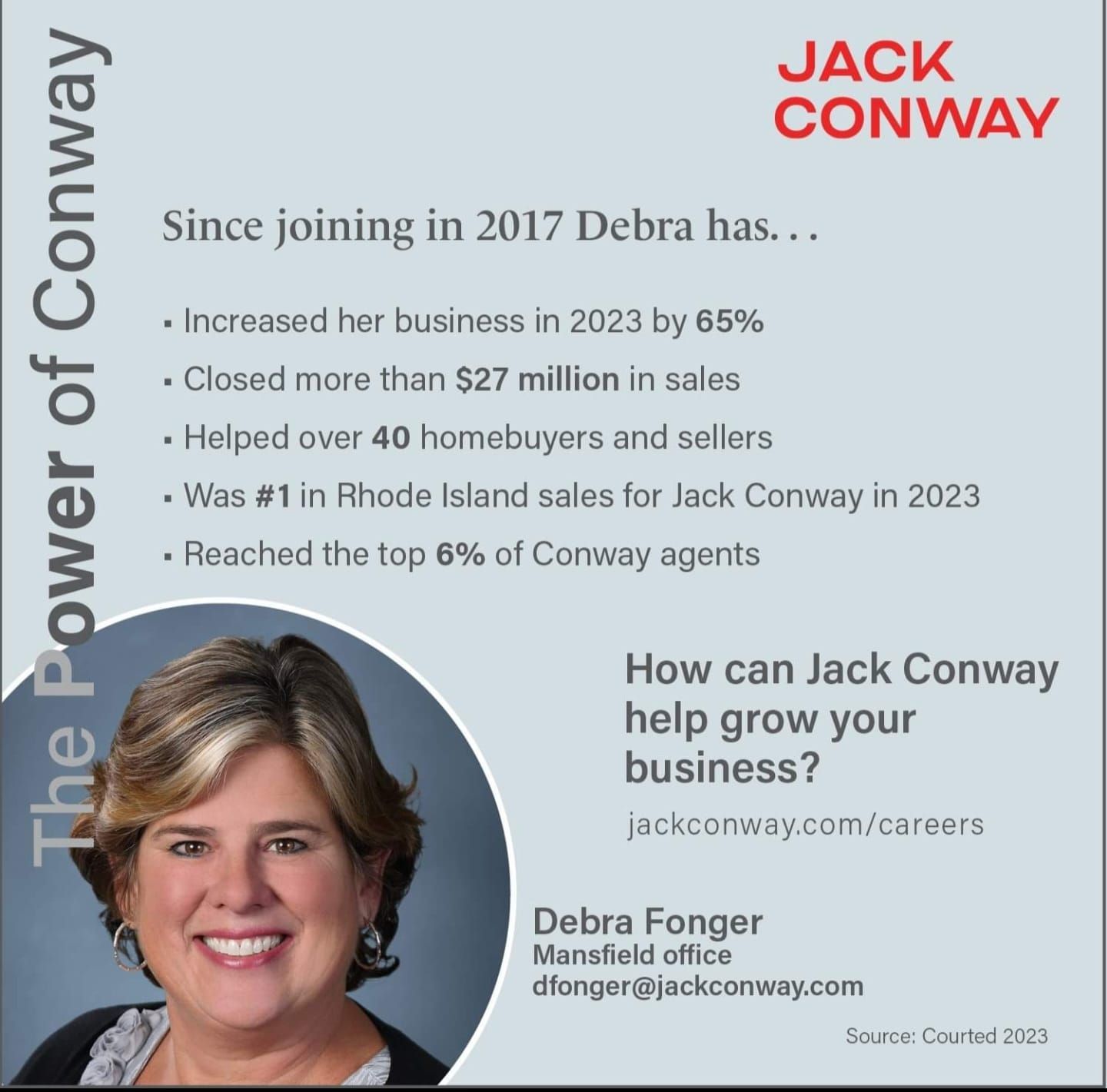 "Welcome…My name is Debra Fonger, sales associate of the Mansfield office of Jack Conway & Company. As a REALTOR®, my job is to make sure that my clients are fully informed and involved and have all the information to make the right real estate decisions for them and their families. Having been in the industry for 22+ years I have worked in a wide variety of real estate conditions. From buyers markets to sellers markets, rising and recessing economies, I know the ins and outs of navigating through it all. I pride myself on my work ethic, negotiating skills, and thinking outside of the box to creatively market your property, or give you the best negotiation advantage."